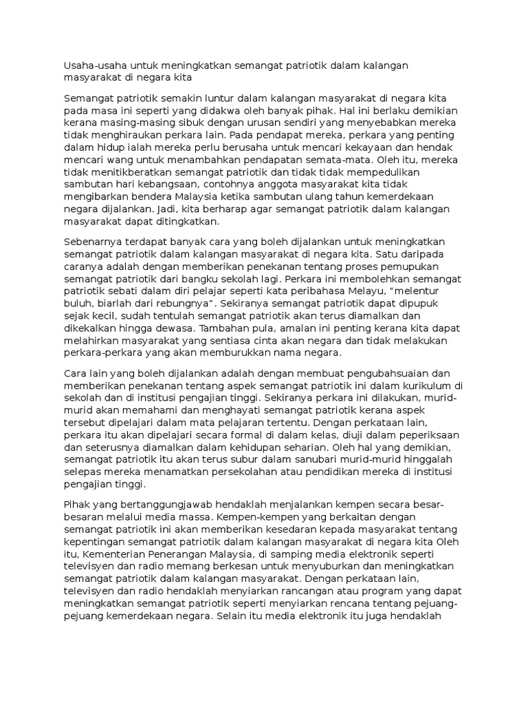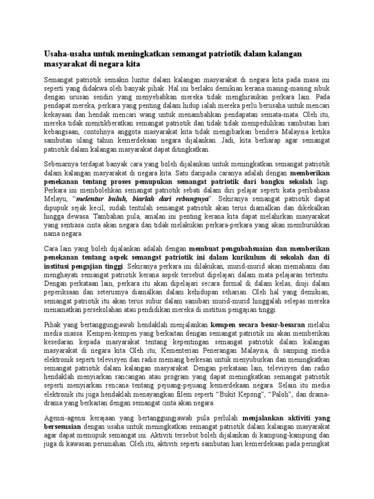 Usaha Usaha Untuk Meningkatkan Semangat Patriotik Dalam Kalangan Masyarakat Di Negara Kita Pdf